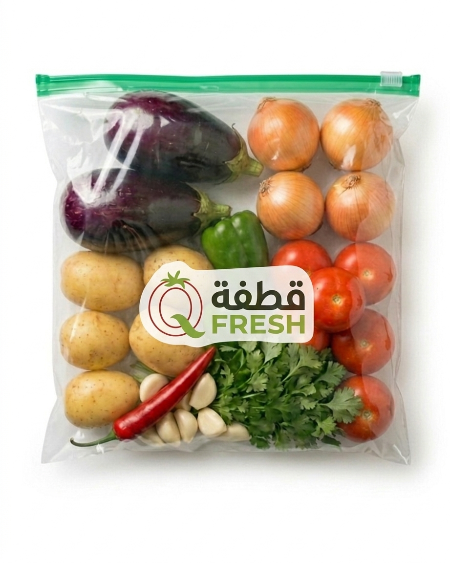 باذنجان رومي+فلفل رومي+بطاطس+طماطم+1فلفل حار+فصوص ثوم+خضره